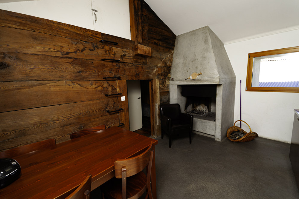 Ainsi qu'une salle à manger équipée pour 4 personnes, avec un pôele à bois (bois à disposition).